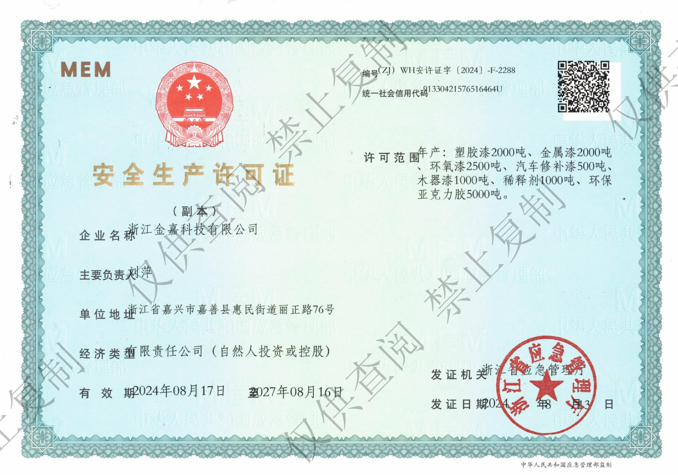 浙江金嘉科技有限公司创建于2000年,在创始人的带领下,深耕化工领域二十余载,始终秉持“笃定前行,行稳致远“的核心理念,致力于打造以胶黏剂、水性工业漆、化工合成等化工产品的研发、生产、销售、施工为一体的绿色新材料一站式集成系统。公司现拥有30,000㎡现代化生产基地及50余人专业团队,为客户提供高价值、高标准的产品,助力客户企业可持续发展。